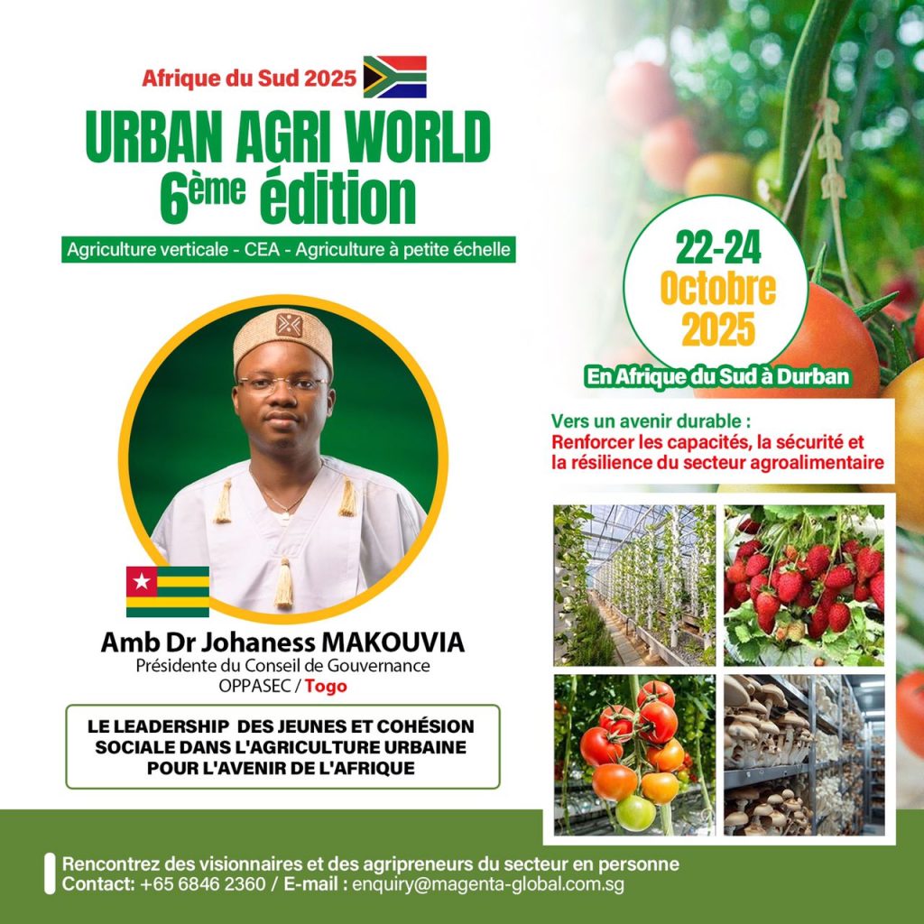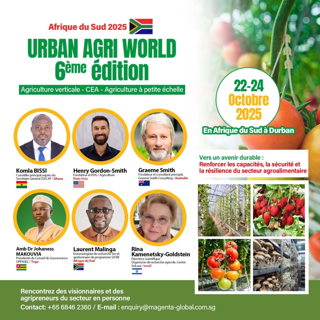 L’Afrique du Sud s’apprête à accueillir du 21 au 24 octobre 2025, au prestigieux Capital Zimbali Resort de Durban, la 6ᵉ édition du Urban Agri World Summit (UAW 2025), un rendez-vous international majeur réunissant décideurs, experts et leaders du monde agricole autour du thème de la sécurité alimentaire, de la résilience et de la durabilité des systèmes agroalimentaires africains.