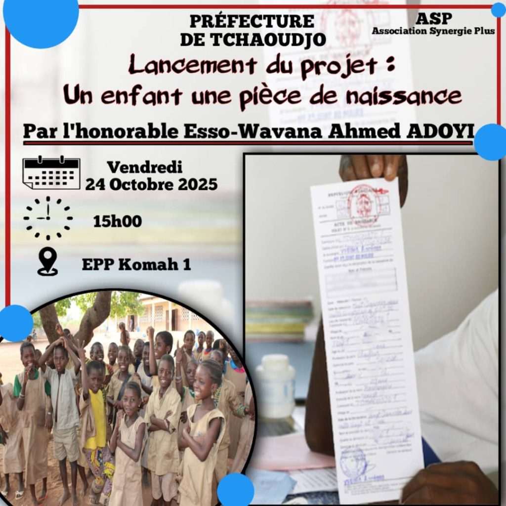 Ce projet s’inscrit dans une dynamique de promotion de l’inclusion sociale et de l’égalité des chances pour tous les enfants. En lançant officiellement les activités, le député Esso-wavana Ahmed ADOYI a souligné toute l’importance de ce document civil souvent négligé.