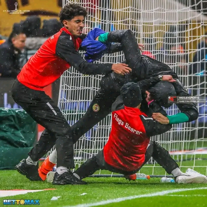 Durant les prolongations, un joueur marocain remplacé a pris position près du poteau du gardien sénégalais pour s’assurer qu’Édouard Mendy ne puisse pas récupérer une autre serviette, cette fois-ci bleue. Yohan, le deuxième gardien sénégalais, a tenté de sécuriser la serviette pour son titulaire, entraînant un duel entre lui et le joueur marocain.